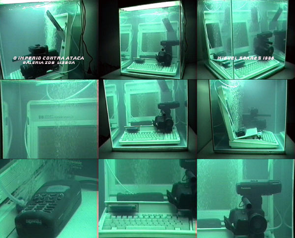Desktop is an aquarium with electronic equipment from the early 90's.